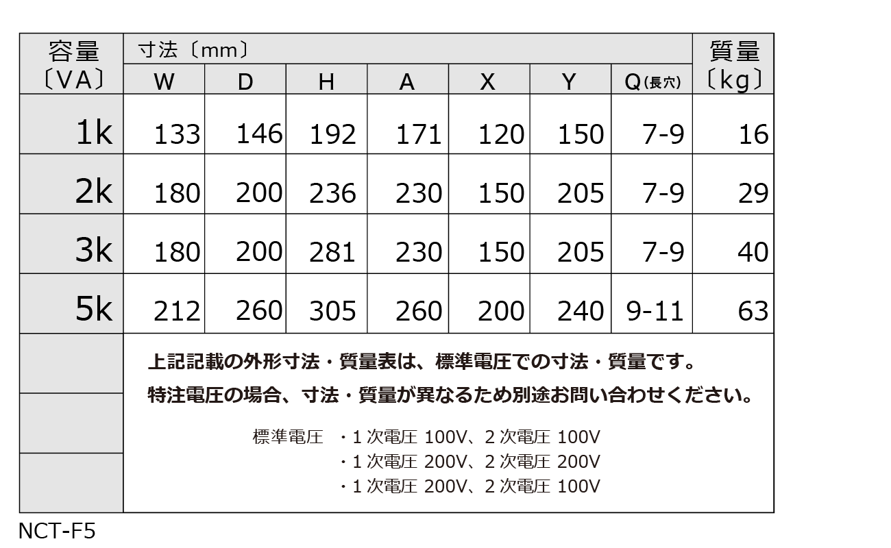 定格電圧 ・1次電圧 100V、2次電圧 100V